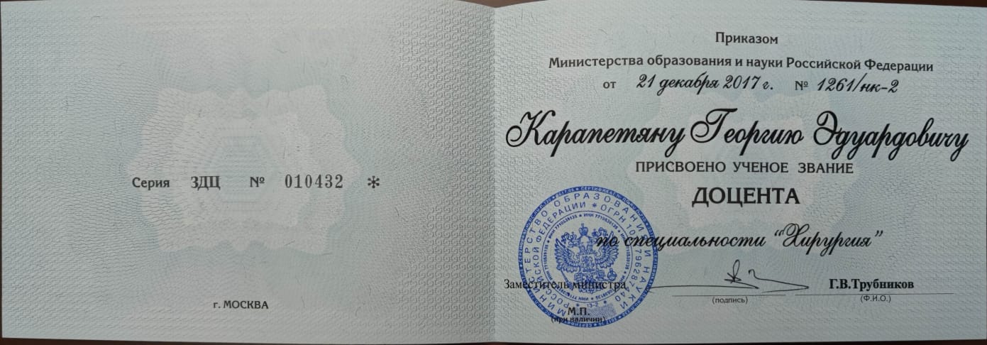 В 2014 году - получил высшую квалификационную категорию по специальности «Хирургия»