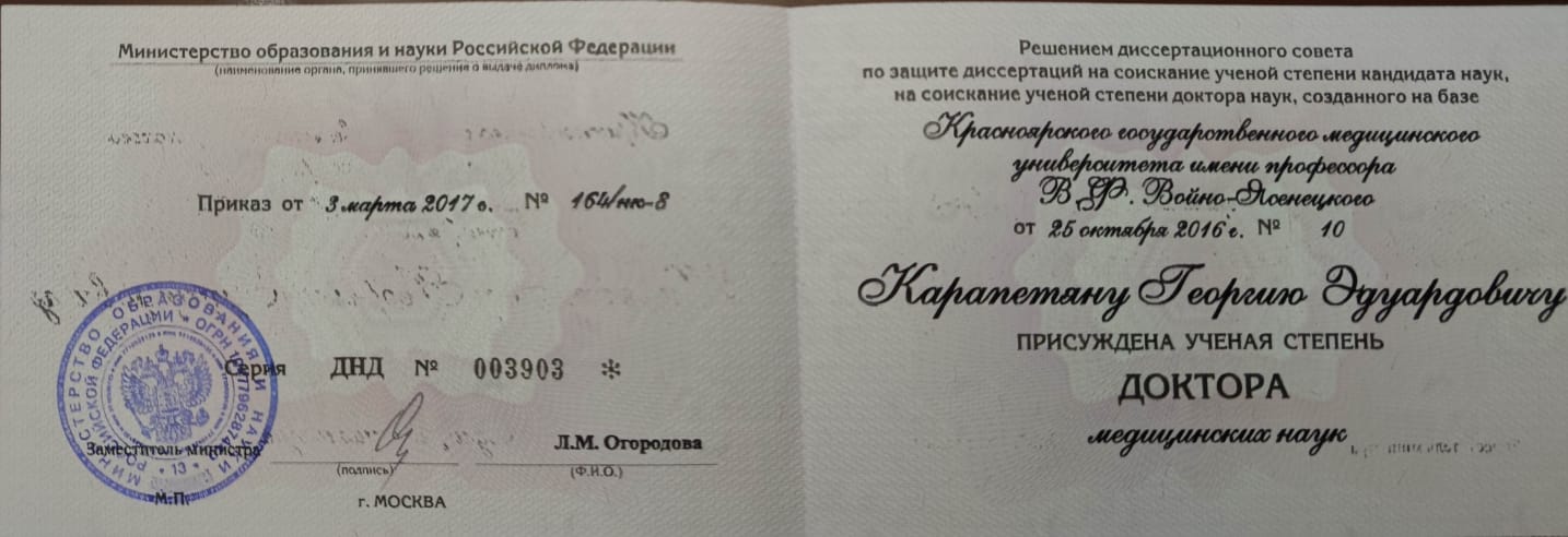 В 2016 году - успешно защитил докторскую диссертацию по специальности «Хирургия»